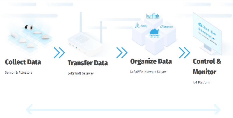 But how does a LoRaWAN work? First, the LoRa acronym stands for “long range”, as the technology uses a low-power wide-area network to transmit data. The WAN part of the name simply defines a communication protocol and a system architecture to ensure a smooth communication between all the connected devices. More than a thousand of these devices may be linked to a LoRaWAN gateway, which has a range of 8 km in urban areas and 15 km in suburban areas. In the case of sensors in a home or in a factory, they will need a LoRaWAN gateway within the range in order to transfer their data. Once this data is collected, the hub will put it in a cloud storage and make it accessible to the users of the Enectiva software. This is how one can look at the data on their phone and change the parameters directly with a few clicks.
